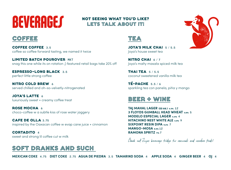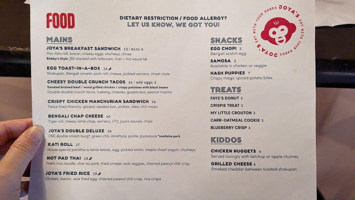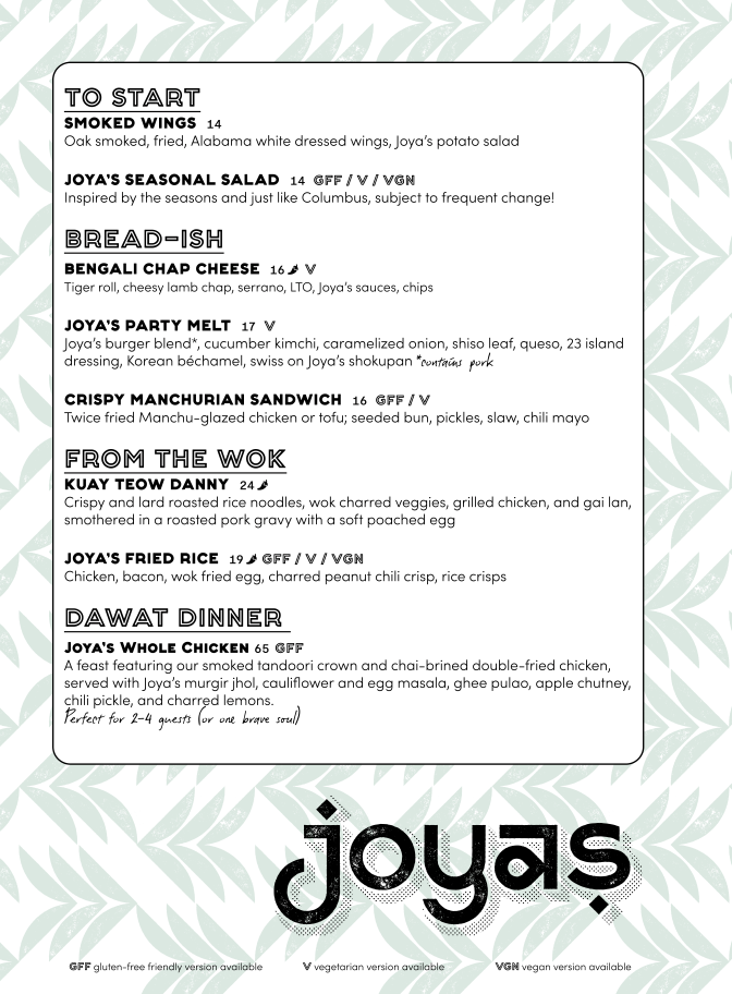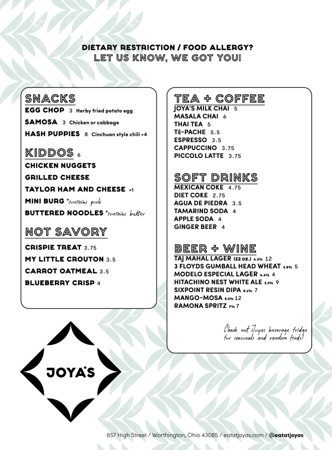 Joya's Menu