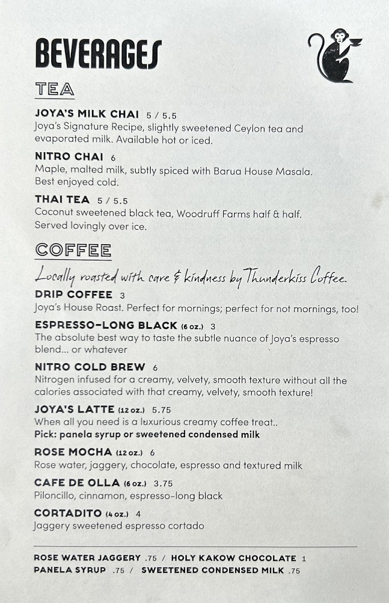 Joya’s offers a thoughtfully crafted menu that blends comforting breakfast classics with vibrant, globally inspired flavors. Whether you’re stopping by for a morning pick-me-up or a casual midday bite, the menu combines simple café staples with unique twists that keep each visit interesting.